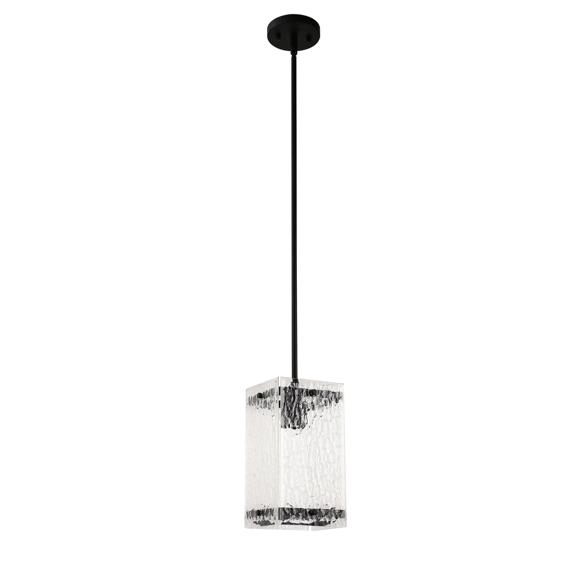 Add a touch of sophistication to your home with our 1-Light Black Pendant Hanging Light. Featuring a beautifully designed glass shade with beveled edges, this pendant light casts an elegant glow, creating a refined atmosphere in any space. The sleek black finish and sturdy suspension rod not only ensure durability but also bring a modern edge to your decor. Perfect for kitchens, dining areas, or living rooms, this fixture uses an E26 base bulb (not included) to provide both functional and aesthetic lighting.