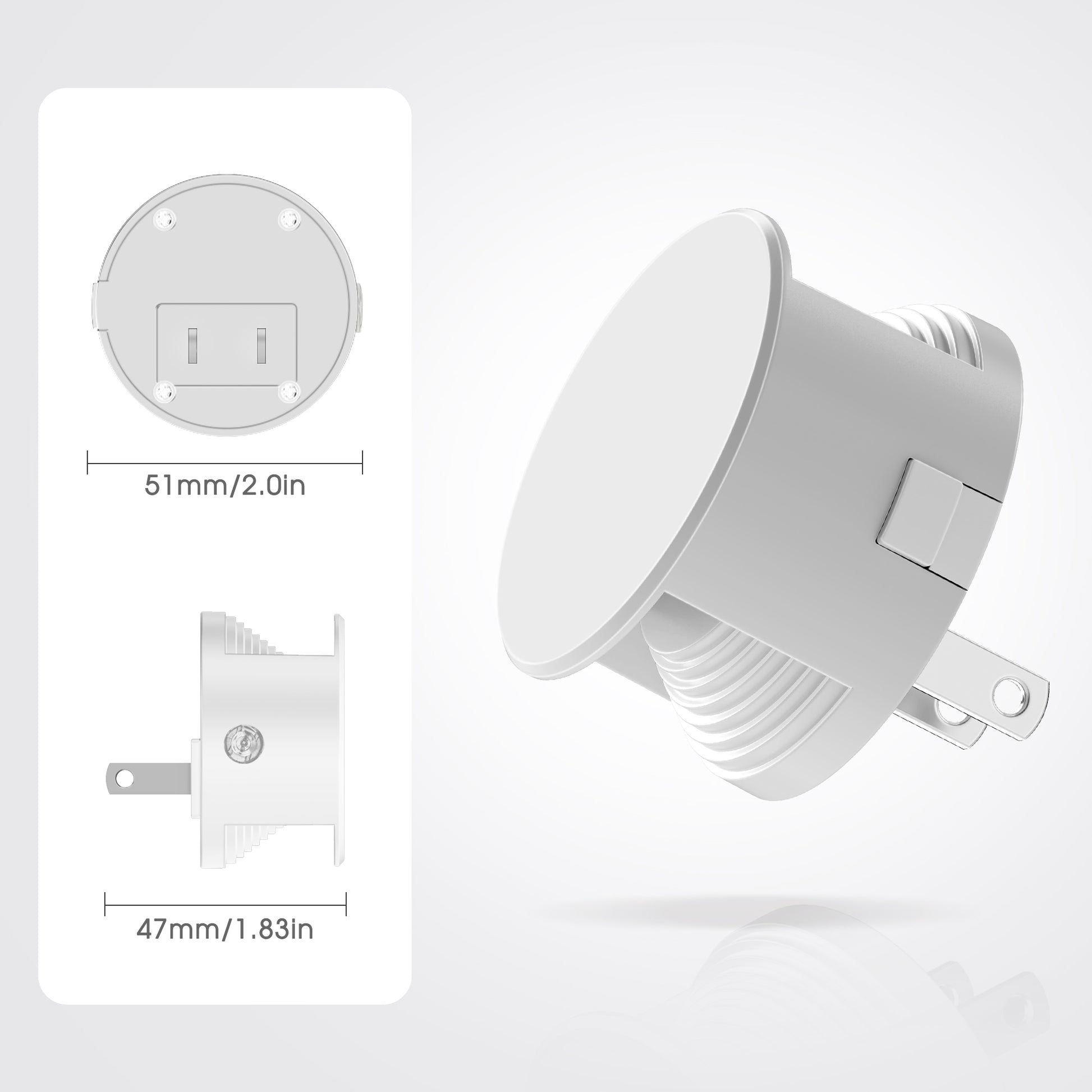 Illuminate your space with this 1W Integrated LED plug-in round wall-like night light featuring a white casing and up-down lighting. It offers three brightness levels (10%, 50%, 100%) adjustable via button, and long-press 2 seconds to turn off while retaining the last brightness setting upon reactivation. The Dusk to Dawn sensor automatically manages lighting based on ambient brightness, ensuring energy-efficient, hands-free operation.
