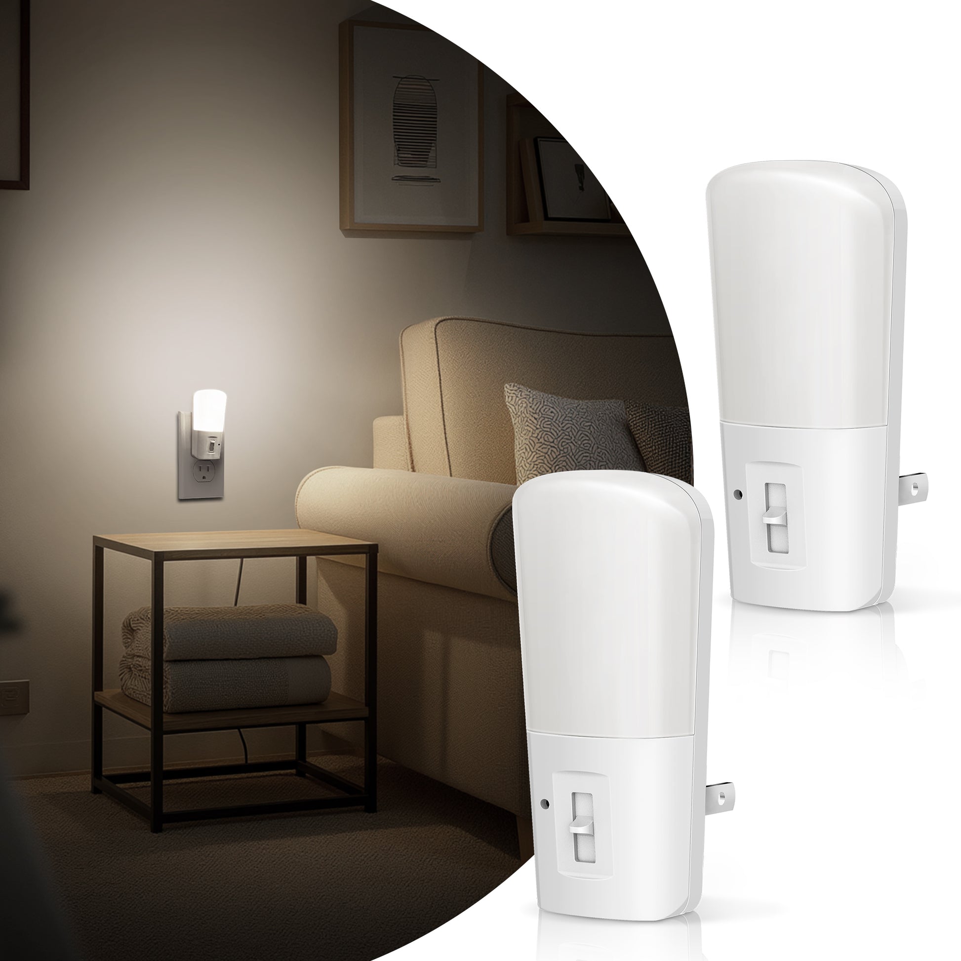 This 2-pack of vertical plug-in LED night lights offers crisp 5000K daylight illumination paired with a light sensor for automatic on/off. Each light features stepless slide dimming to fine-tune brightness levels, making them ideal for bedrooms, bathrooms, or hallways. The minimalist white housing complements any d¨¦cor while using only 1 watt of power per unit.