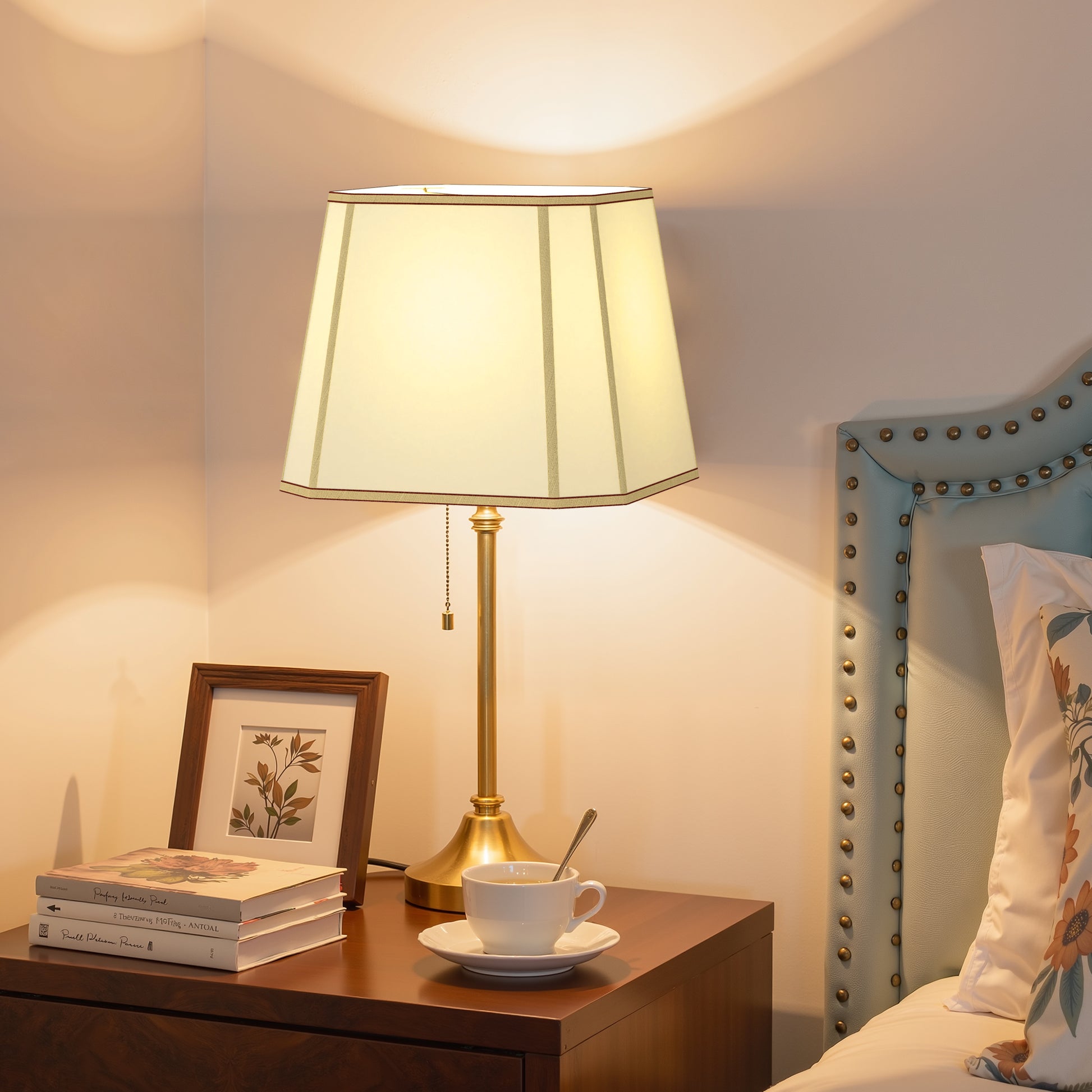 YANSUN 10.6 in. H Gold Metal and Fabric Polygon Cone Lamp Shade with Uno Fitter