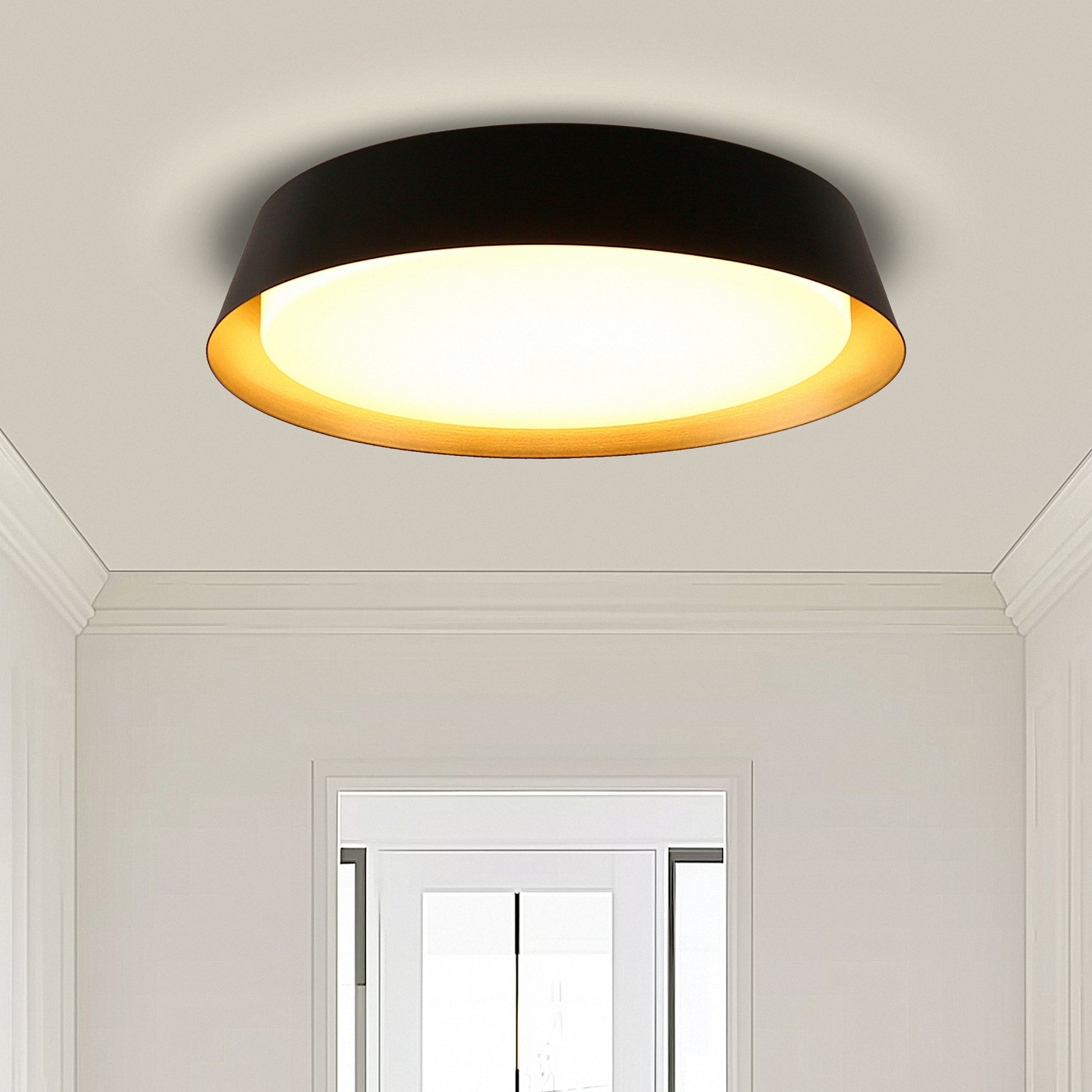 This elegant black and gold flush mount ceiling light offers versatile lighting with 5CCT color temperature options, ranging from 3000K warm white to 6000K daylight, providing perfect lighting for any room. Featuring silicon-controlled dimming functionality, you can adjust the brightness smoothly for customized lighting. Ideal for modern homes or offices, this fixture combines luxurious design with energy-efficient LED technology for long-lasting illumination.