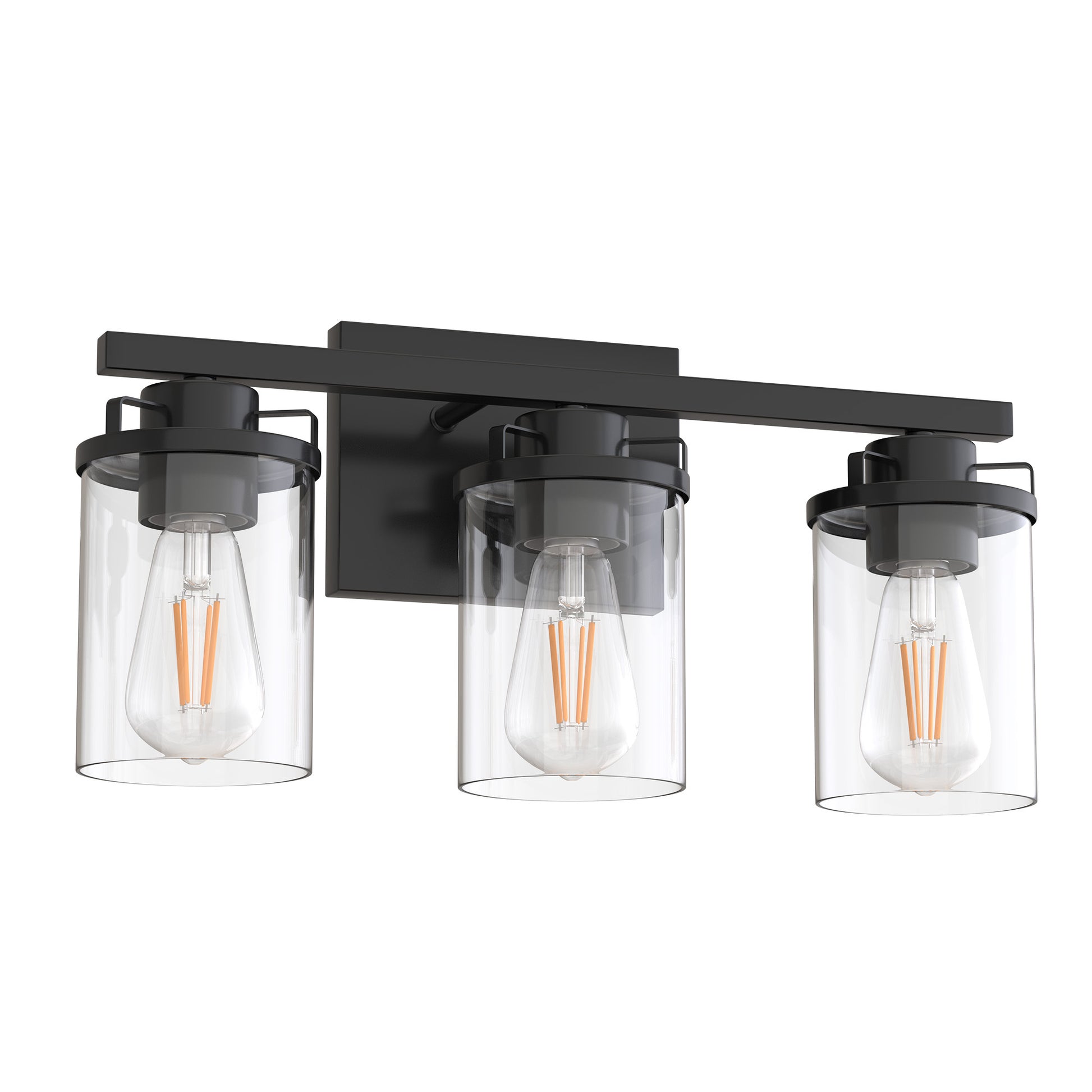This 3-light black vanity light fixture is a budget-friendly way to update your bathroom with style. The sleek black finish and clear glass shades create a modern, clean look while providing ample illumination. Perfect for anyone looking to brighten their bathroom without breaking the bank, this fixture combines quality and affordability in 1 stylish package.