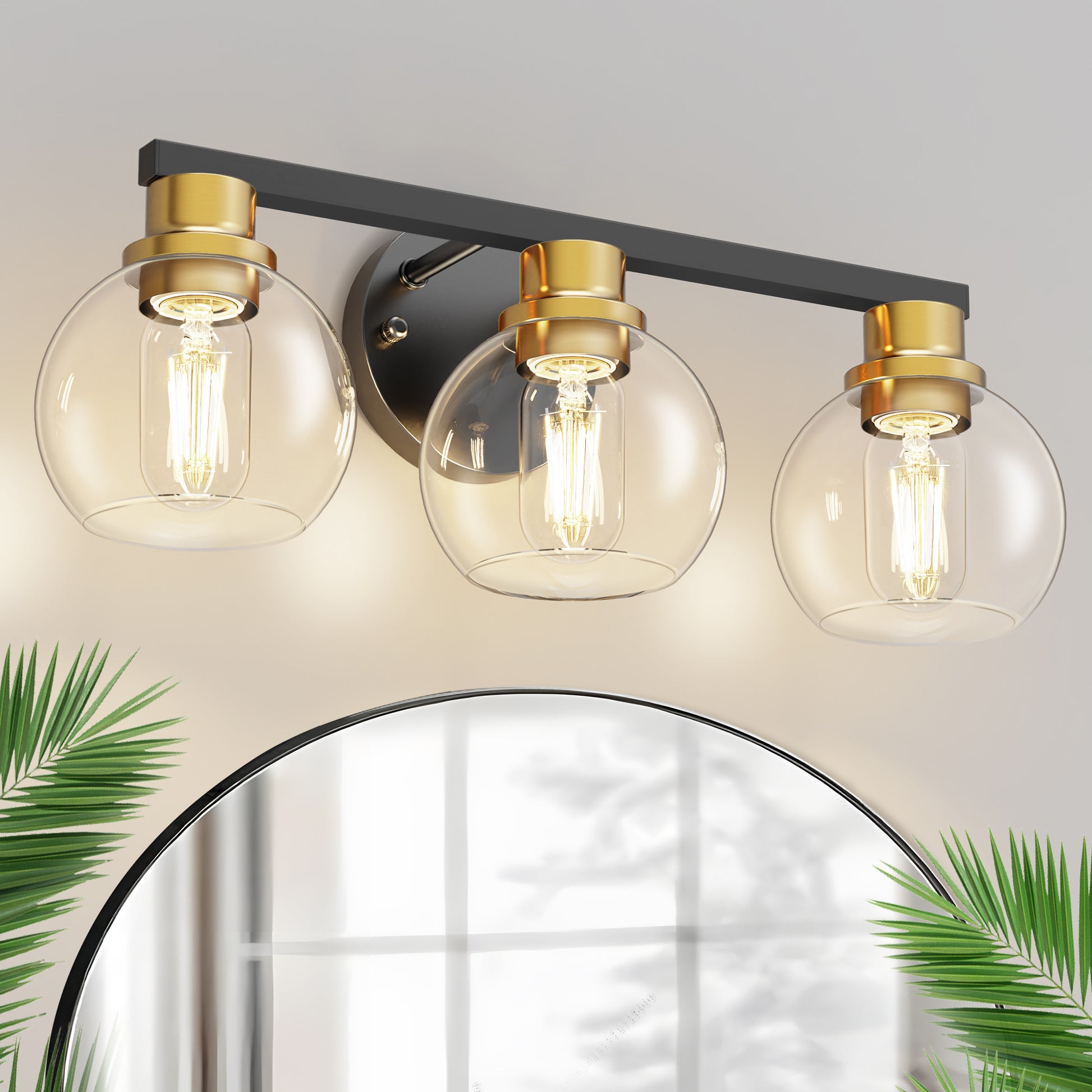 Illuminate your powder room or bathroom with this sleek 3-light vanity fixture, featuring a stylish Black and Gold finish and clear globe shades. Designed with energy-efficient LED lighting, this fixture provides bright, focused illumination while adding a modern touch to your space. Perfect for small bathrooms or powder rooms, it delivers both functional and aesthetic appeal in one, making it a standout addition to your home.