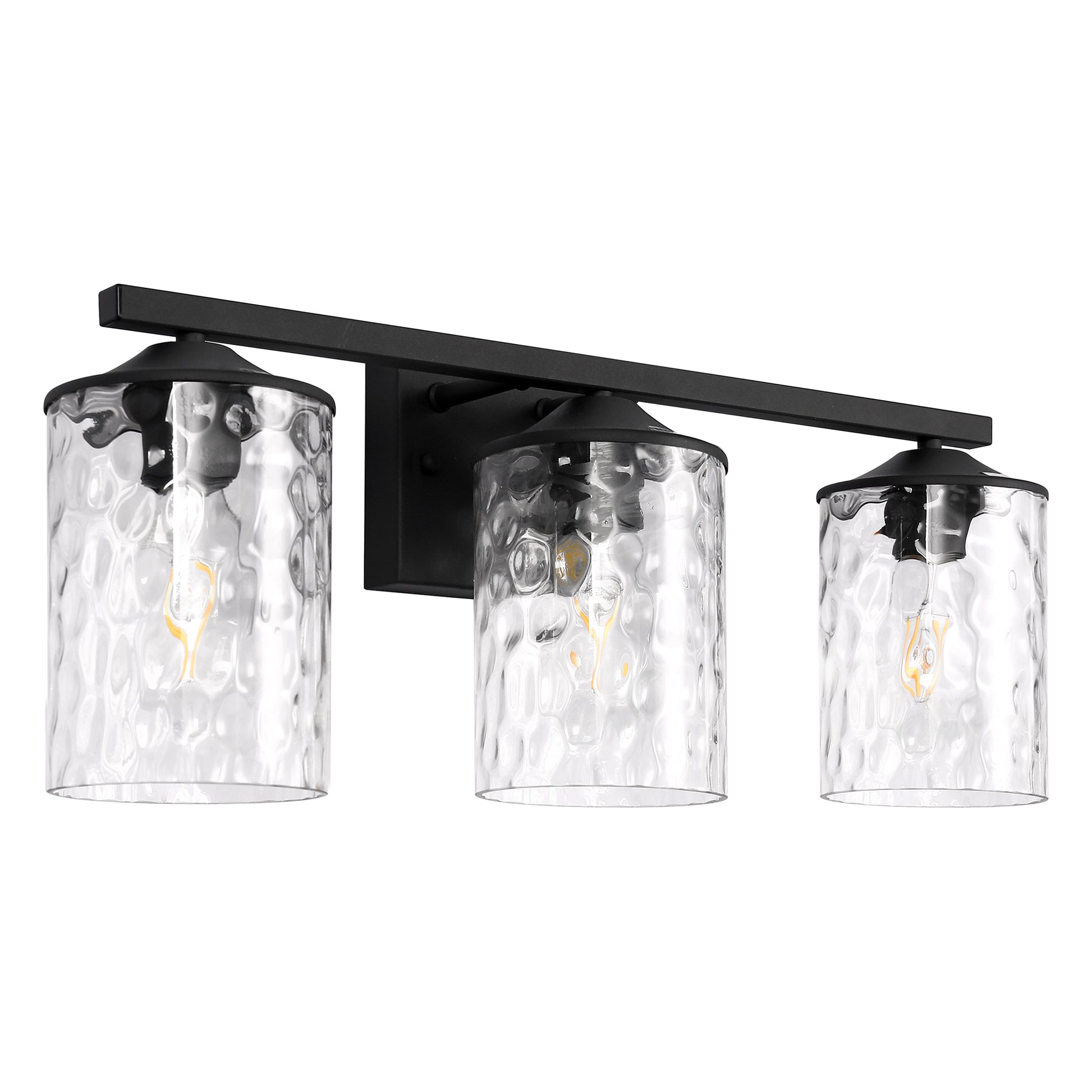 YANSUN 24 in. 3-Light Matte Black Modern Vanity Light with Clear Cylinder Glass Shades, 60W Dimmable, Damp Rated for Bathroom