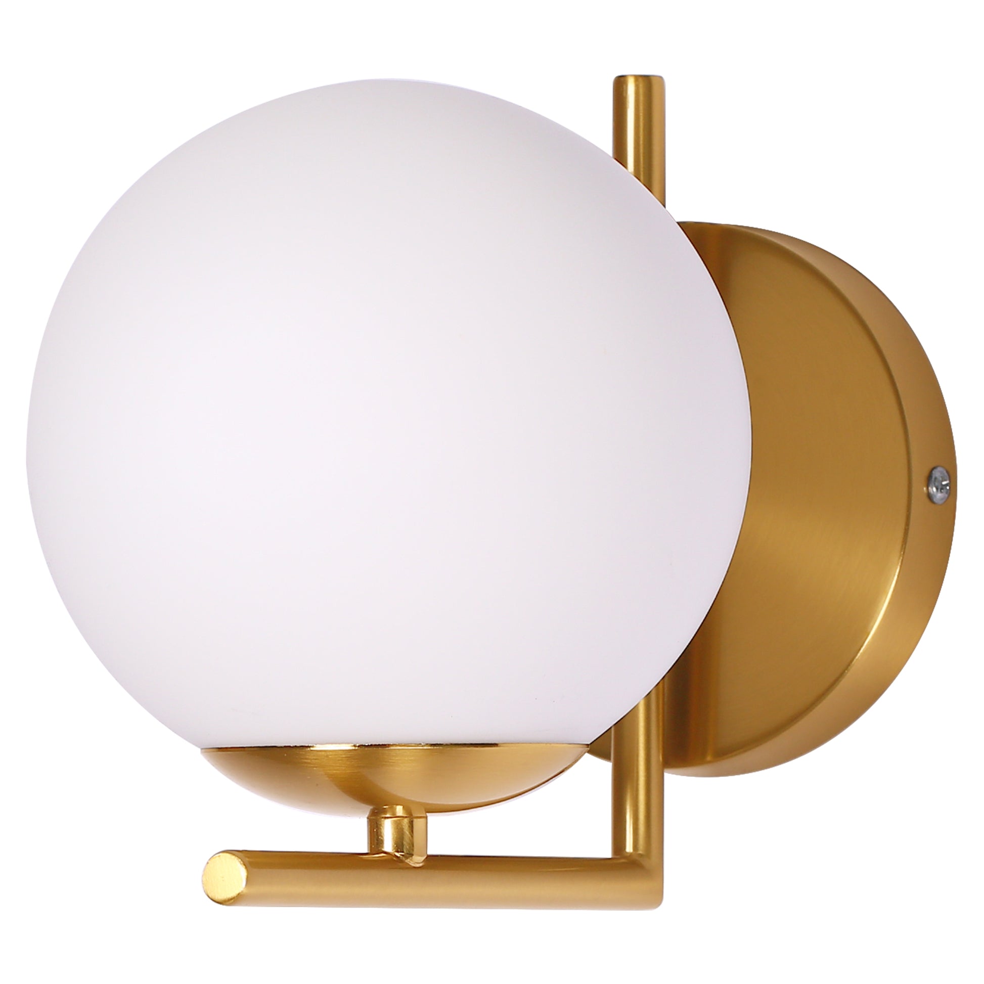 YANSUN 6.7 in. 1-Light Modern Indoor Wall Sconce in Brass Finish with Globe Shade, E26 Base, for Bedroom, Living Room, Hallway